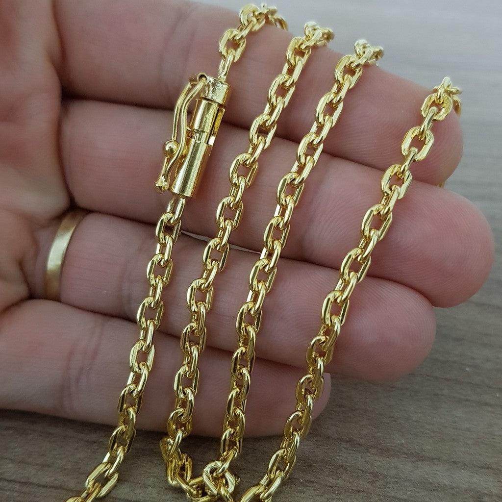 Corrente Banhado 18k modelo Cadeado 4mm-60cm Fecho Canhão